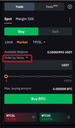 7、输入订单金额或数量。如通过限价单和条件单等其他订单类型下单,您需要输入订单价格或触发价格。