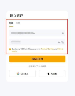 2、选择使用邮箱或手机号码注册。请输入您的邮箱地址或手机号码+国际区号、密码和邀请码(如有,否则留空即可)。