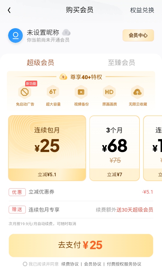 3、还可以选择以低于正常会员价格的福利开通UC网盘会员,领取免费的空间