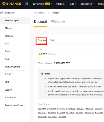 2,访问币安的“充值”页面