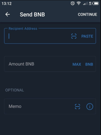 9.您需要在此字段粘贴币安充值页面显示的充值地址和MEMO,也可以使用手机摄像头扫描二维码。