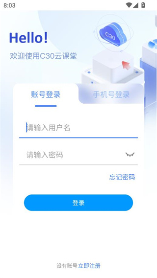 1.在手机上下载安装C30云课堂app,阅读用户协议后点击同意。