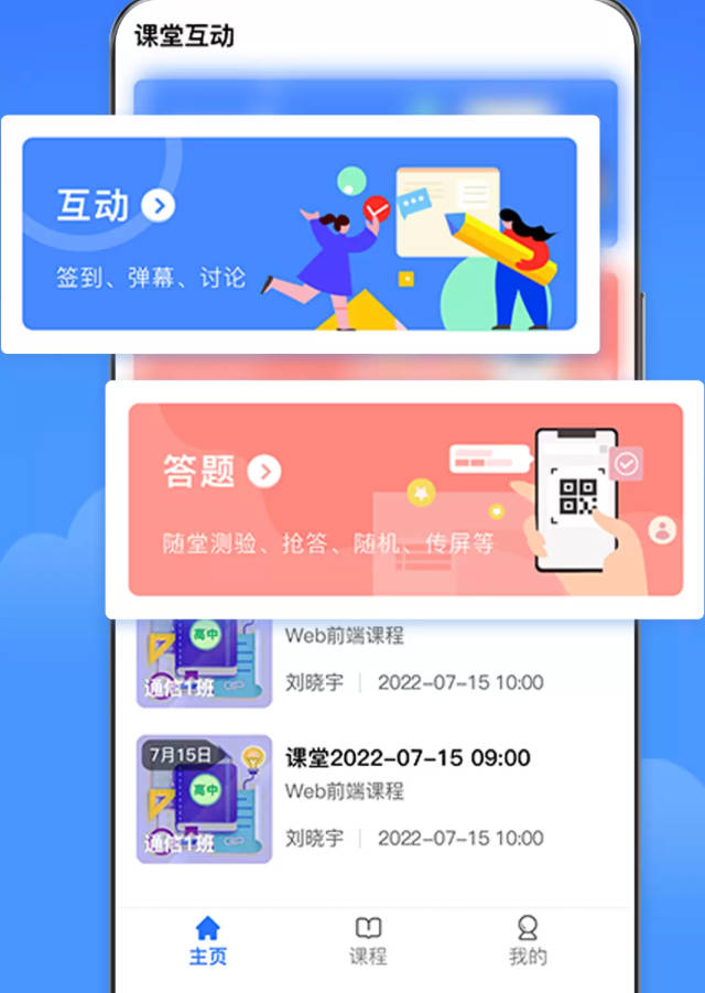 3.点击“互动”可参与答题、抢答、弹幕和讨论等。