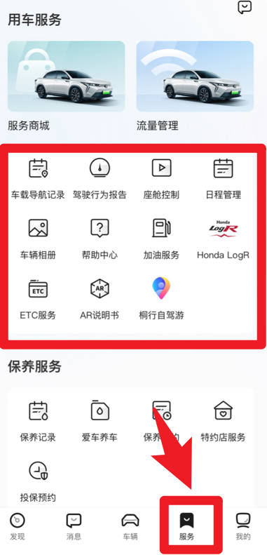 5、在服务板块可以使用导航记录、驾驶行为报告、加油服务等多种功能,全面提升用车体验。