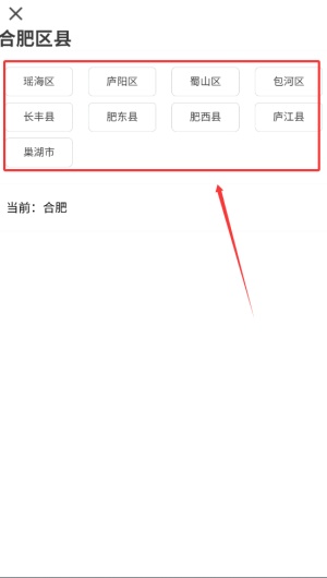 3、在地图或列表中选择您当前所在的城市或区县,确认地理位置。