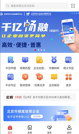 北京通企服版是一款致力于为企业提供全周期服务支持的综合性移动应用,在功能布局上,应用设立了今日申报板块,实时更新各类申报事项与征集通知,帮助用户迅速完成线上或线下申报操作。内置的政策匹配工具可根据企业画像与需求智能推荐相关政策,大幅提升查询效率。同时,全面覆盖的政策库与动态政策知识库支持关键词检索,方便用户随时查阅详细条款与行业资讯。