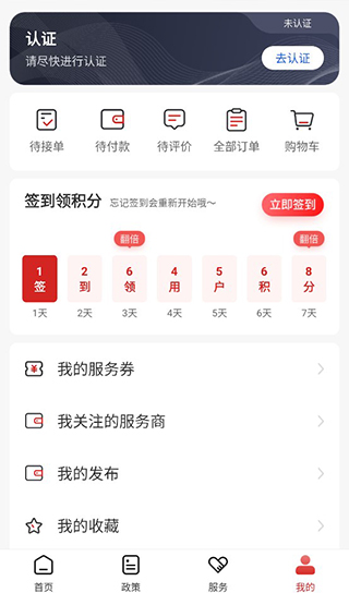 5.用户点击下方我的,即可查看自己的信息和订单,以及进行企业认证,进行意见反馈等等。