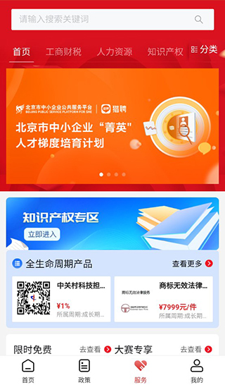 4.用户在服务页面,可以进行知识产权、人力资源等专利进行购买,也有许多软件、法律等服务可以购买。
