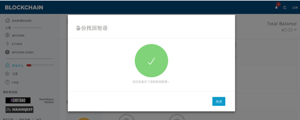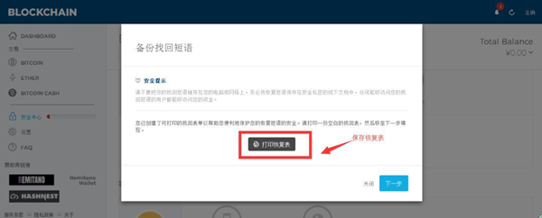 Blockchain钱包会有类似IMtoken钱包一样的12个助记词,大家一定要备份好,用清晰的字体摘抄下来。