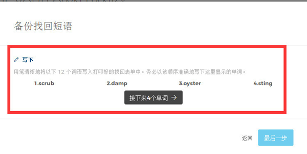 重复助记词的时候注意,要严格按照助词词的顺序填写
