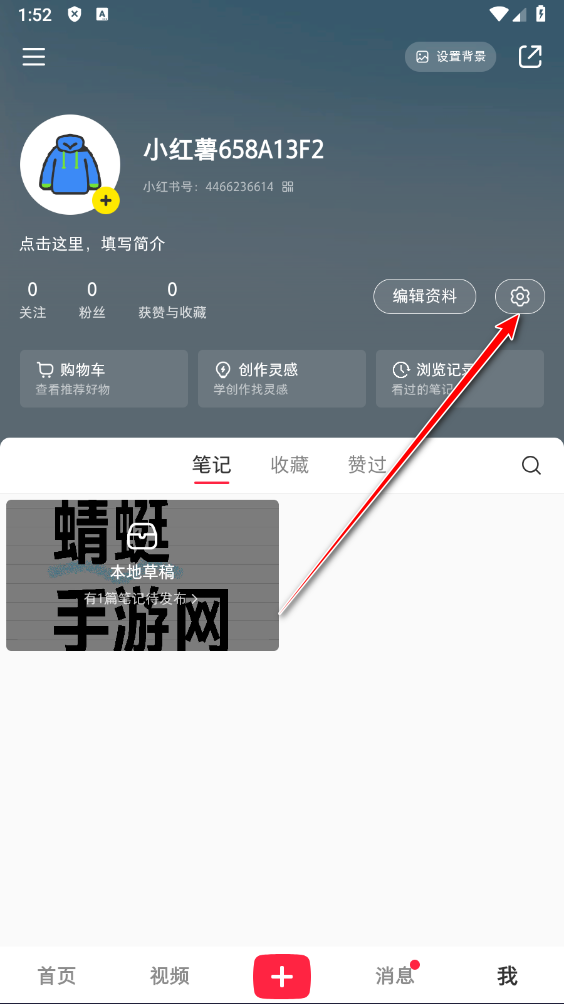 打开小红书App,点击底部的我