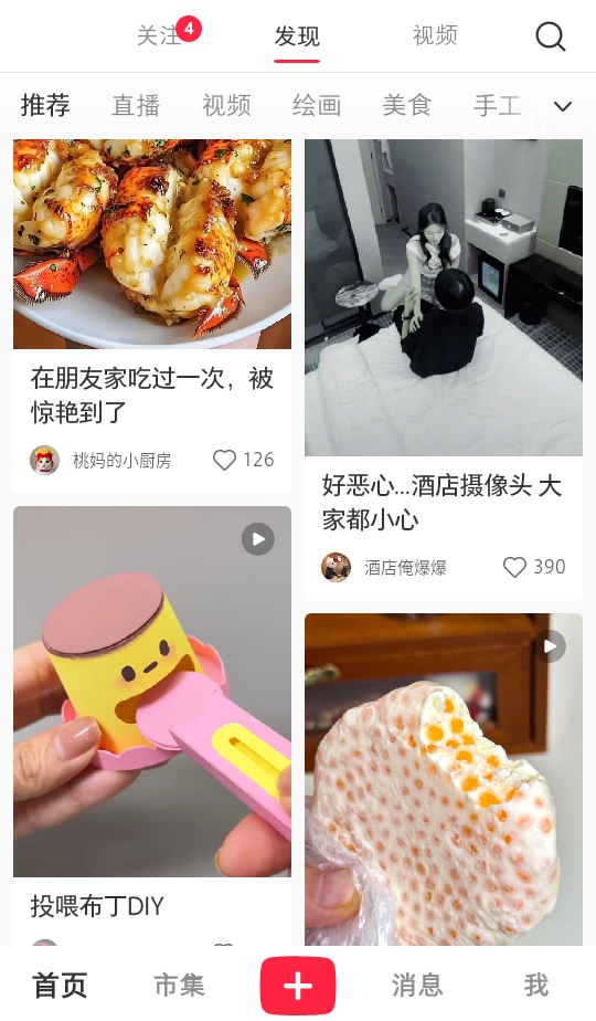 打开小红书app,点击右下方中间的+号
