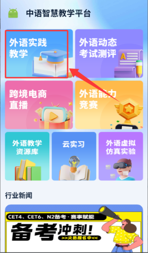 3、通过外语实践教学功能入口,使用教学服务。