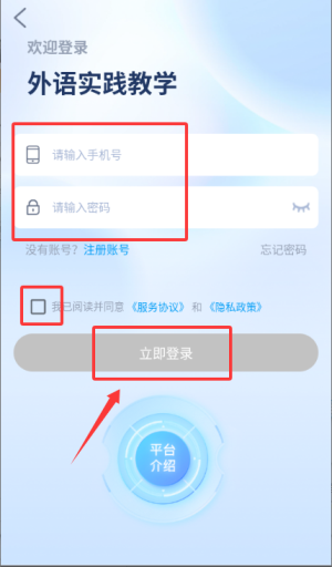 2、输入手机号与密码并勾选协议,完成登录验证。