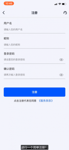 输入您的用户名、昵称、登录密码、确认密码,并点击下方“注册”按钮。