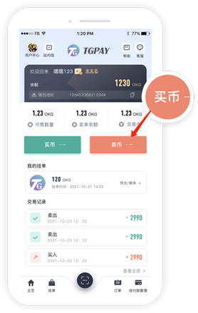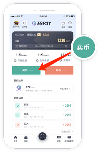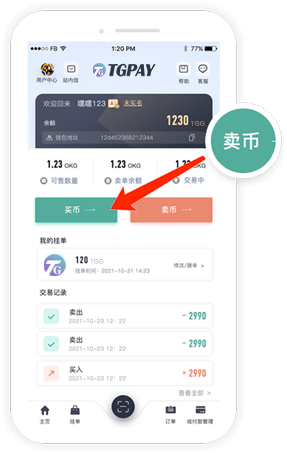 在 TGPay钱包App的首页,找到 “卖币” 按钮并点击。