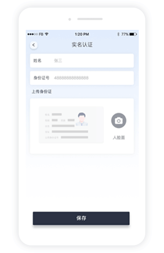在实名认证页面, 填写你的真实姓名,以及身份证号码。