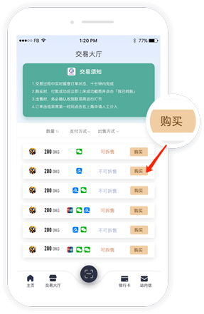 在买币页面, 选择你想要购买的商家,并点击 “购买” 按钮。