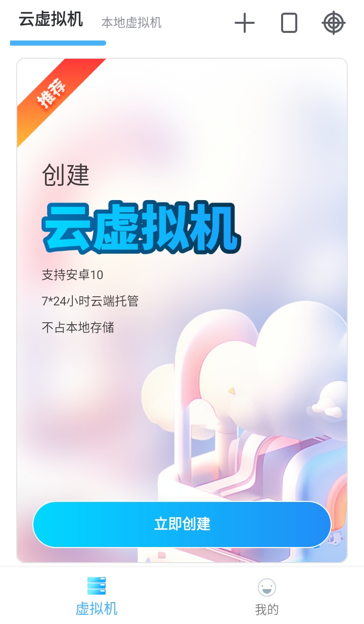 1.首先,打开VMOS软件,在“首页”界面找到并点击“添加虚拟机”。