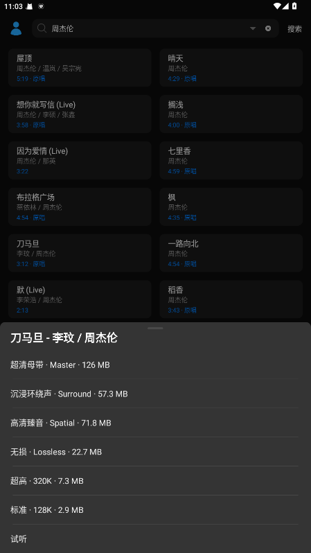5.点击你需要下载的音质,即可把相对应音质的音乐下载到手机上保存。