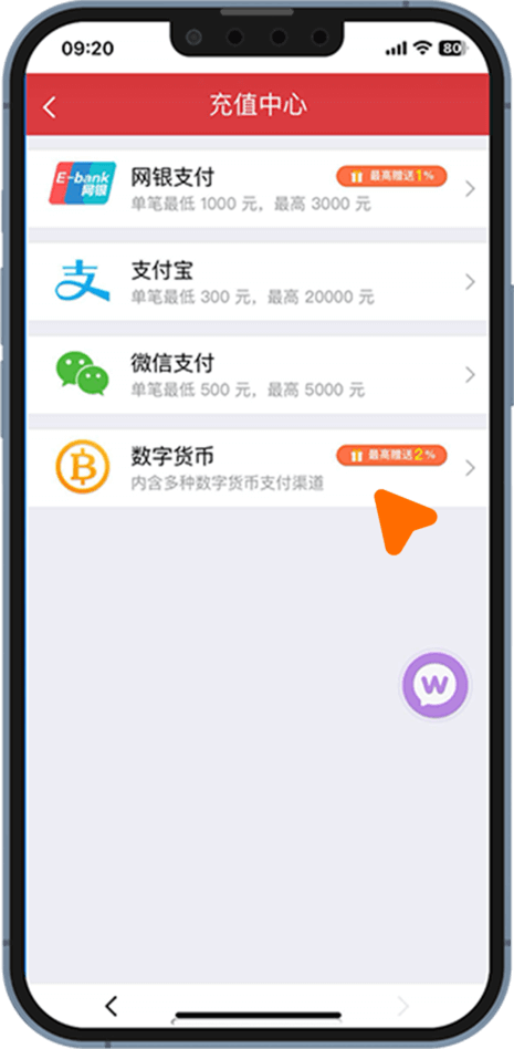 点更多选择通道5[OBPay支付]输入充值金额点击[确定]