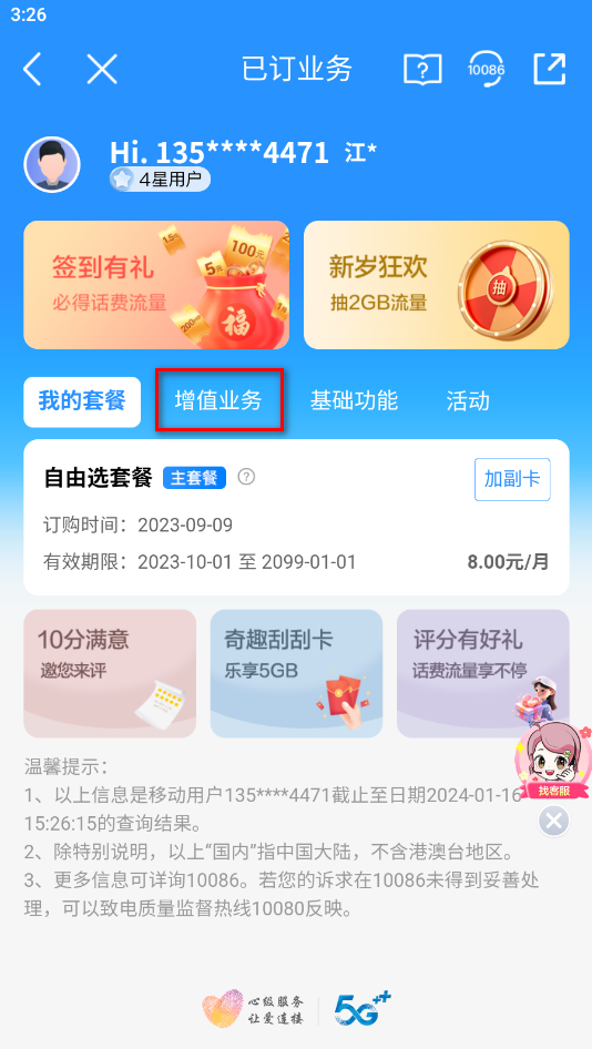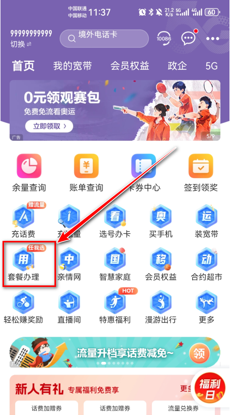 1.打开中国移动,首页就可以看到我们的流量剩余情况