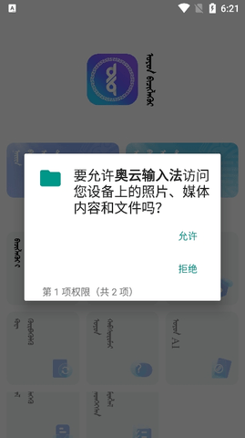 2、进入软件后同意奥云输入法允许访问权限