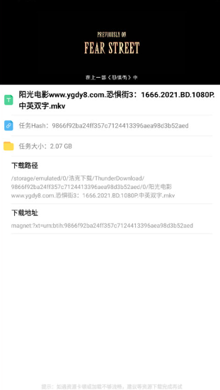 1、打开app之后会有一个磁力链接供你测试,点击右下角的尝试下载。