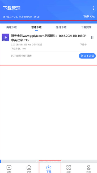 3、这时就会将下载进度显示到【下载】模块中,点击右下角的边下边播。