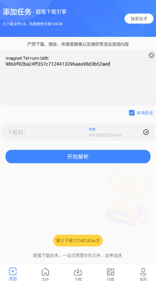 浩克下载app官方下载,一款磁力下载器工具,浩克下载app内置高速下载引擎,支持不限速下载,下载速度取决于用户的网络带宽,确保用户能够快速完成下载任务。涵盖电影、电视剧、音乐、游戏等多个领域,用户可以轻松找到所需的资源,满足大家多元化的下载需求!