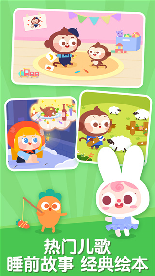 百万儿歌动画、睡前故事、音律童谣、绘本故事、互动场景、舞蹈绘画……更多优选内容给孩子一个快乐的童年。