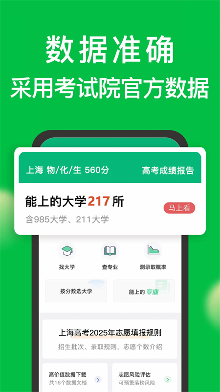 目前软件使用的数据全部来自各大教育网站和高校。虽然更新速度是官方决定的,但是从根本上杜绝了虚假的可能。