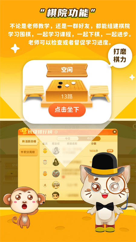 一起学围棋破解版无限围棋币版是一款专门针对广大青少年儿童打造而成的手机围棋学习软件,在这款软件中不仅有着超多可爱的卡通人物而且更是采用了孩子最感兴趣的趣味互动教学模式,使得每一位孩子都能够在欢声笑语中收获围棋知识,此外,该软件还会在每一个阶段的学习完成后为孩子发送奖励,让孩子能够提升对围棋的兴趣,更加有效的进行学习。