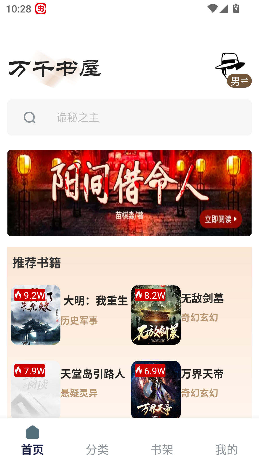 1、打开软件进入首页,这里的小说都是免费的;