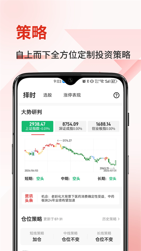 2、仓位策略:根据趋势给出具体的仓位建议,解决股民“买多少”的问题,可查看历史策略。