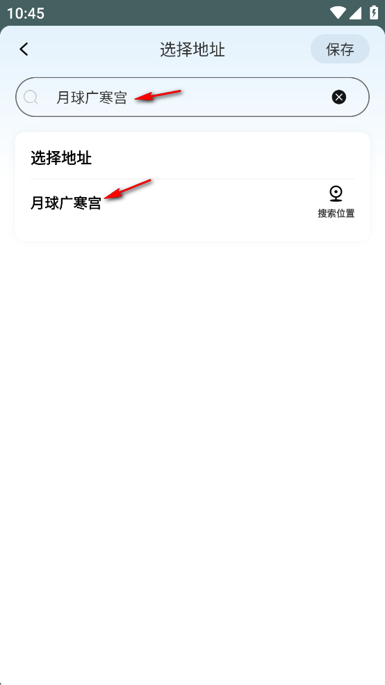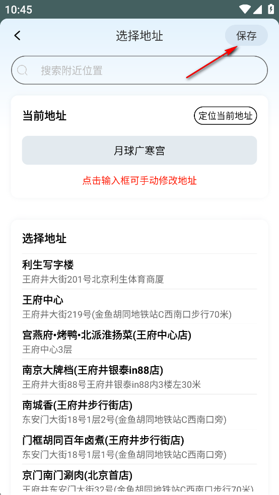 5.点击【地点】,输入地点,选择地点,点击【保存】即可;