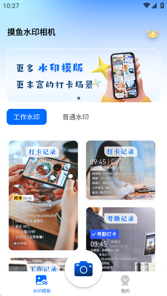 摸鱼水印相机是职场人必备的高清工作记录工具,支持拍摄新图或上传图库照片一键加水印。对标北京时间的精准时间戳、可自定义地点,搭配考勤打卡、工程记录、执法执勤等超多专业模板,满足不同行业精细化记录需求。核心亮点是支持时间地点灵活修改,彻底解决打卡痛点,还能加密云端存储,不占手机内存。操作简单高效,既能保护原创,又能快速完成工作留痕,让外勤记录、会议存档、项目汇报更省心。