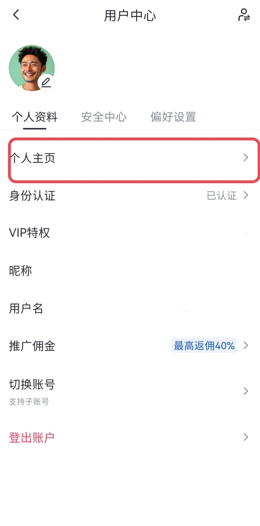 2、进入“用户中心”后,点击“个人资料”的“个人主页”。