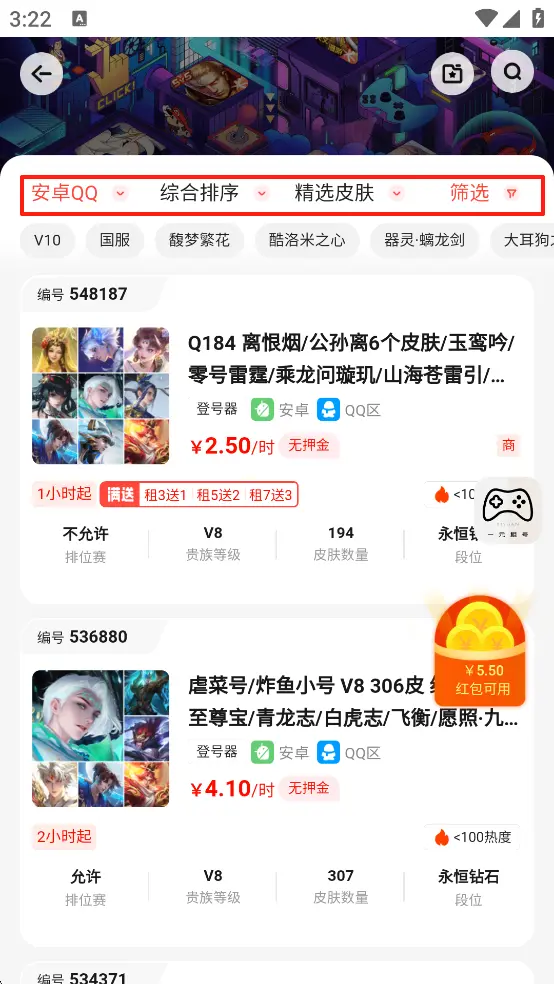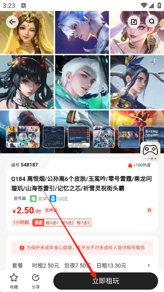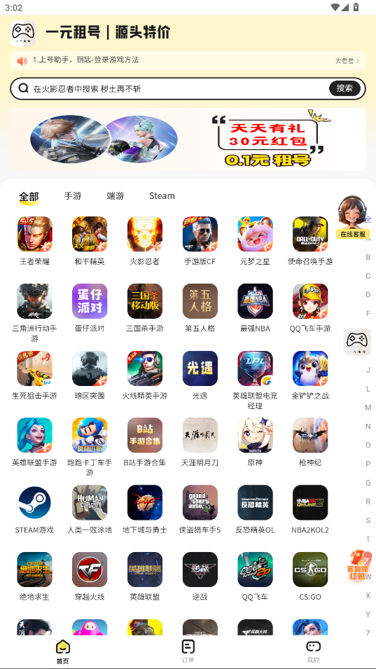 1.打开软件,登录之后,在首页挑选要租号的游戏
