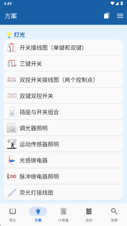 2.点击下方的方案板块,可以看到有很多类型的电工方案。