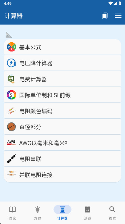 3.点击下方的计算器,就可以看到各种电工需要用到的计算器。