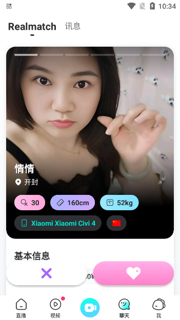 1、为年轻单身伴侣提供约会服务的平台。在这里,用户展示了唱歌和完全约会的互动模式。