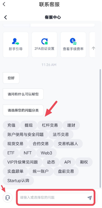 3、如需联系人工客服,可直接在下方对话框中输入并发送“人工”,或者点击对话框前的“耳机”图标,选择问题类型后点击“确定”即可。