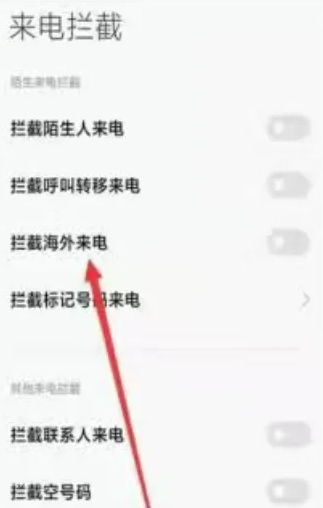 第五步:在来电拦截中将【拦截海外来电】选项打开即可。