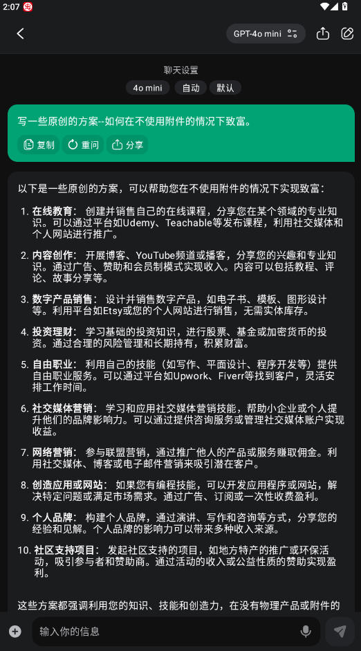 ChatOn不仅仅是一个能陪你聊天解闷的机器人,它更像是一个精通十八般武艺的全能管家。在写作方面它简直是灵感干涸的救星,无论是让你头大的职场周报、需要精雕细琢的商业邮件,还是想要在社交平台吸睛的小红书文案,你只需要给它一个模糊的想法,它就能迅速帮你扩充成逻辑严密、情感饱满的成稿。对于学生党和文字工作者来说,它的语法检查和文本改写功能更是贴心,能精准识别那些肉眼难发现的错别字,还能通过多种风格的改写让你的文章瞬间告别流水账。