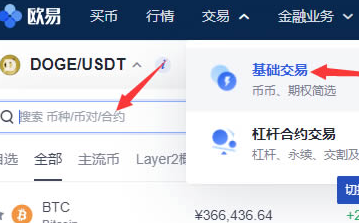 买进DOGE币 :点击 -交易-基础交易 ,搜索 DOGE/USDT 找到 狗狗币,就可以看到目前最新价格动态了。