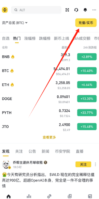 第一步,打开币安钱包应用,登录自己的账号。进入钱包主页后,点击“交易”或“交易所”选项,进入交易页面。
