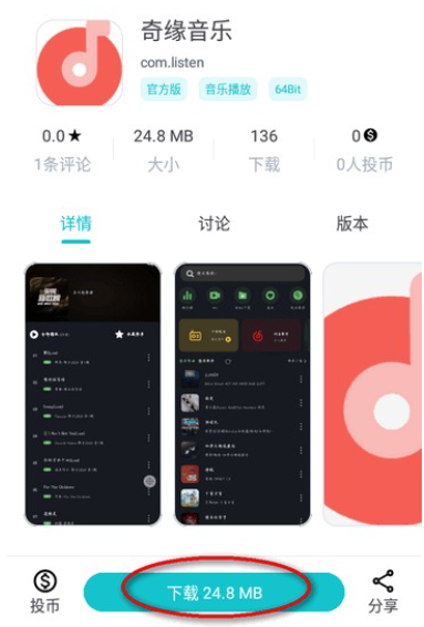 3、点开要下载的应用详情页面,点击下方的下载按钮。