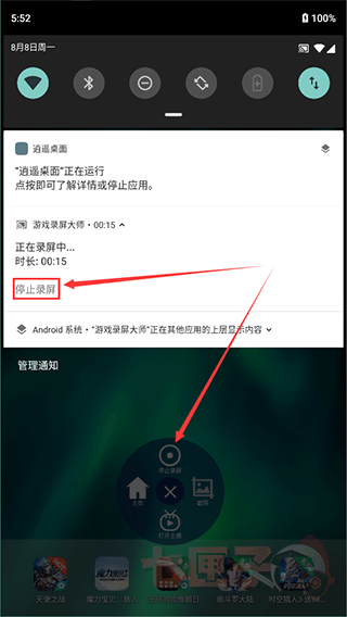 3、录制完成后可以在悬浮窗或者在状态栏点击【停止录屏】按钮,即可结束录屏;