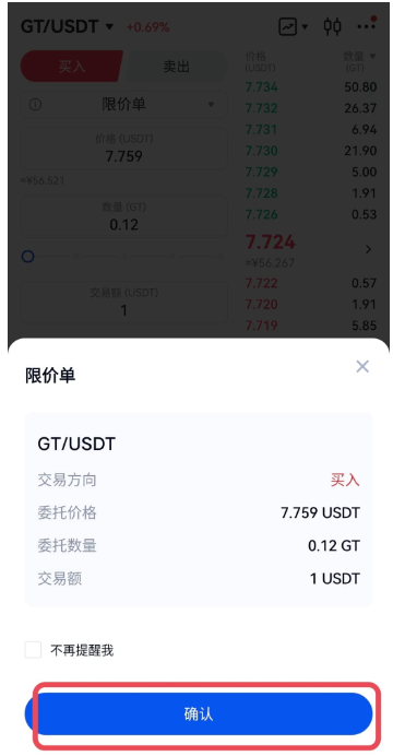 按照页面提示输入对应内容后,点击“买入GT/卖出GT”